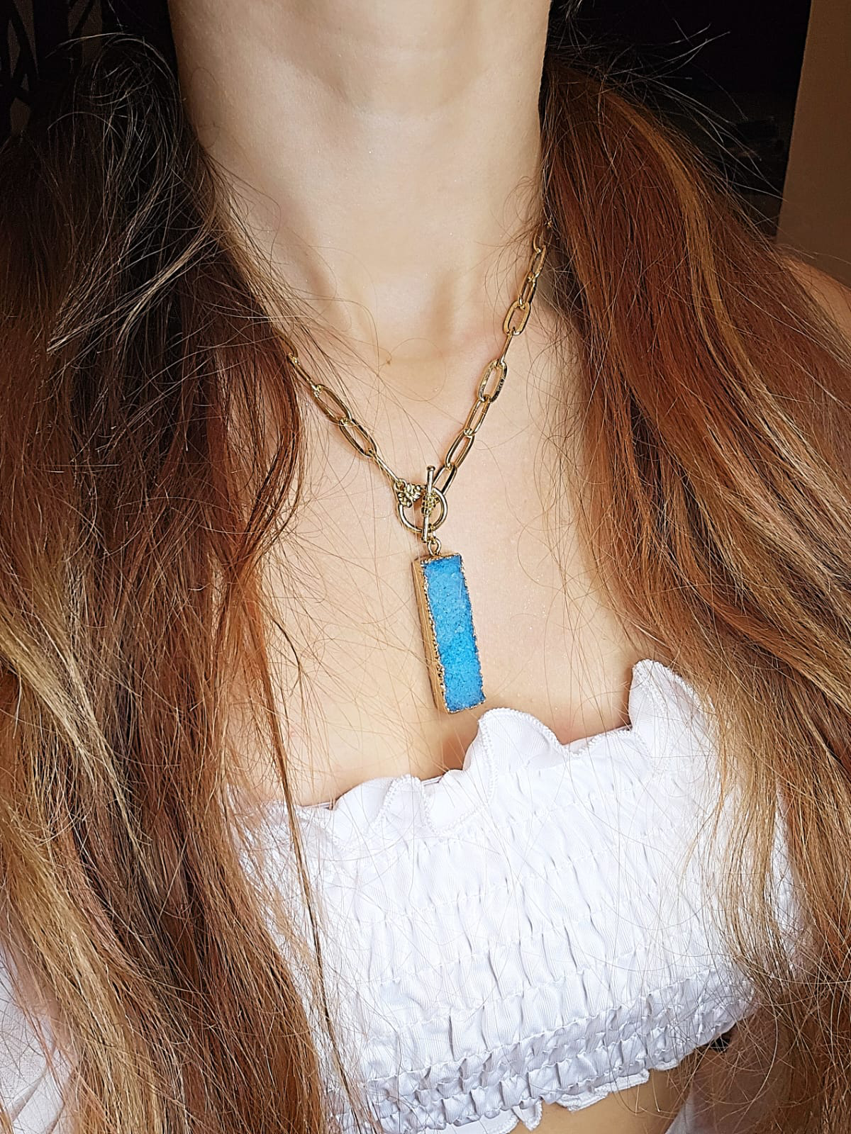 The Enchanted Gemstone Necklace is a trendy and mesmerizing accessory that features a stunning gemstone pendant delicately suspended from a dainty chain. The necklace showcases a carefully selected gemstone, known for its unique and captivating properties.